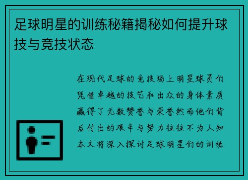从小球场到世界舞台足球明星的成长与奋斗历程分享